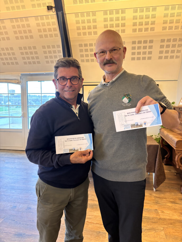 Et nos chanceux au tirage au sort Phillipe TAFFOREAU et Alain FORGIN remportent chacun un green fee à Granville… rebelotte🪄